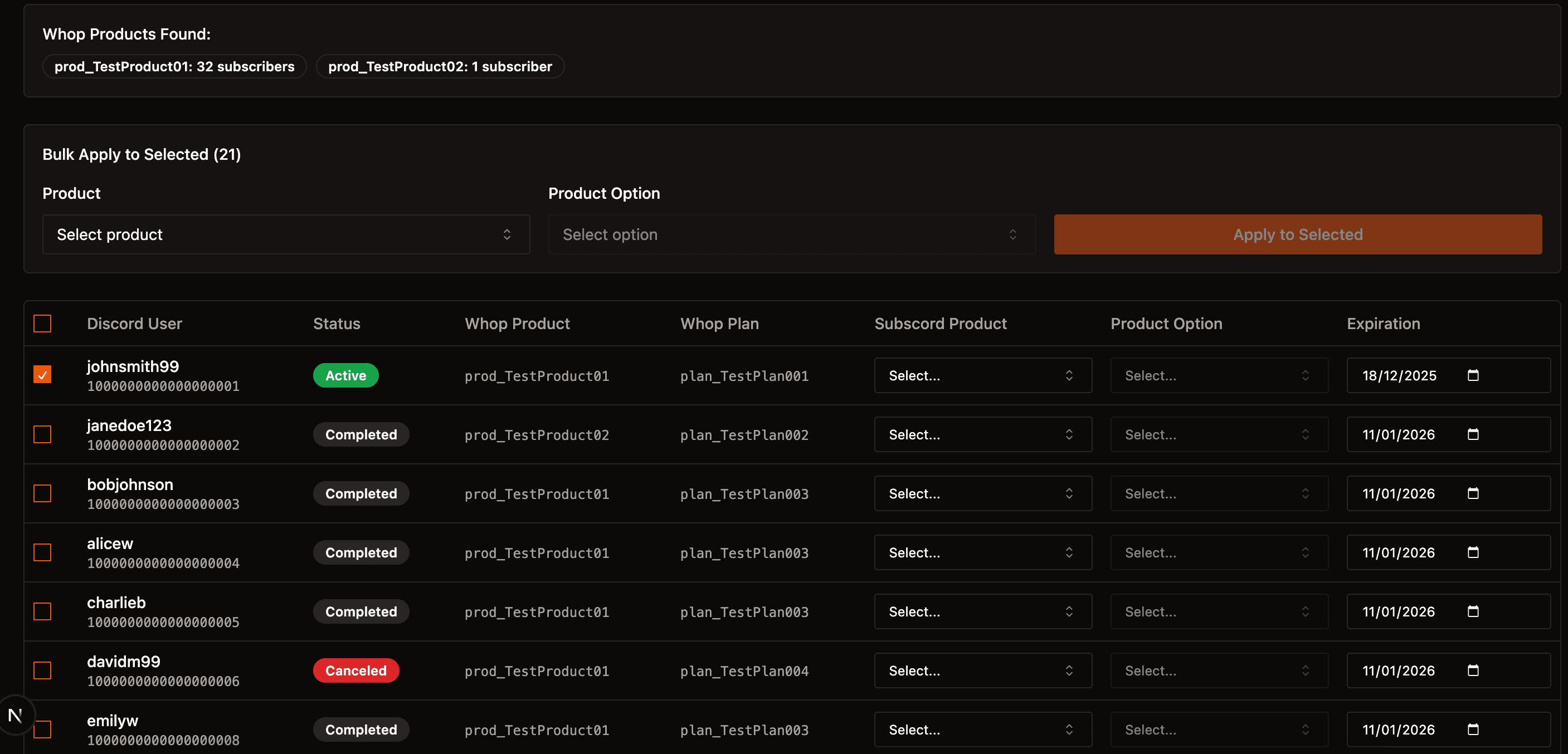 Subscord automatically extracts expiry dates from your Whop CSV export. However, you can modify these dates if needed: